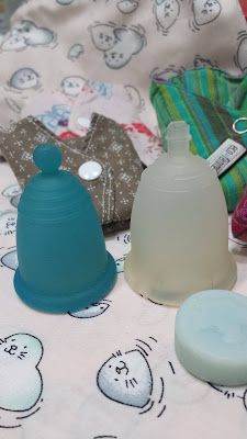第一次用,是買了(圖中右邊) 法國做、半透明的Fleurcup,同時期也和朋友團購了(左邊) 藍色的Me Luna cup 。同時買兩個純粹是因為好奇、貪心,加上第一次使用根本不知道自己的流量多少,要隔幾多個鐘就要倒一次,所以買了大小不同的月經杯。(後來才發現錯有錯着)。