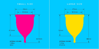 幾乎每個月經杯公司都會建議超過三十或四十歲的,或生過小孩的便選大尺寸;年輕而未生過小孩的就用小的。其實我只是二十多歲,未曾懷孕,以往只用過尺寸小的杯子,這是頭一次大膽地將大杯也買回來。這是因為我知道自己的問題是上述提及的垂吊子宮頸口,需要多點空間,才不致於每兩小時便要倒血一次那麼麻煩。我發現大小兩者同樣舒適,只是我在量多的日子會用大杯,量小便用小杯。因為量小時沒有太多血液充當潤滑劑,小杯會較為容易放進去。大部分月經杯一般最長可以在體內放置十二小時,而在流量多的日子,Super Jennie大杯可以為我載血最多六小時才會開始滲漏。