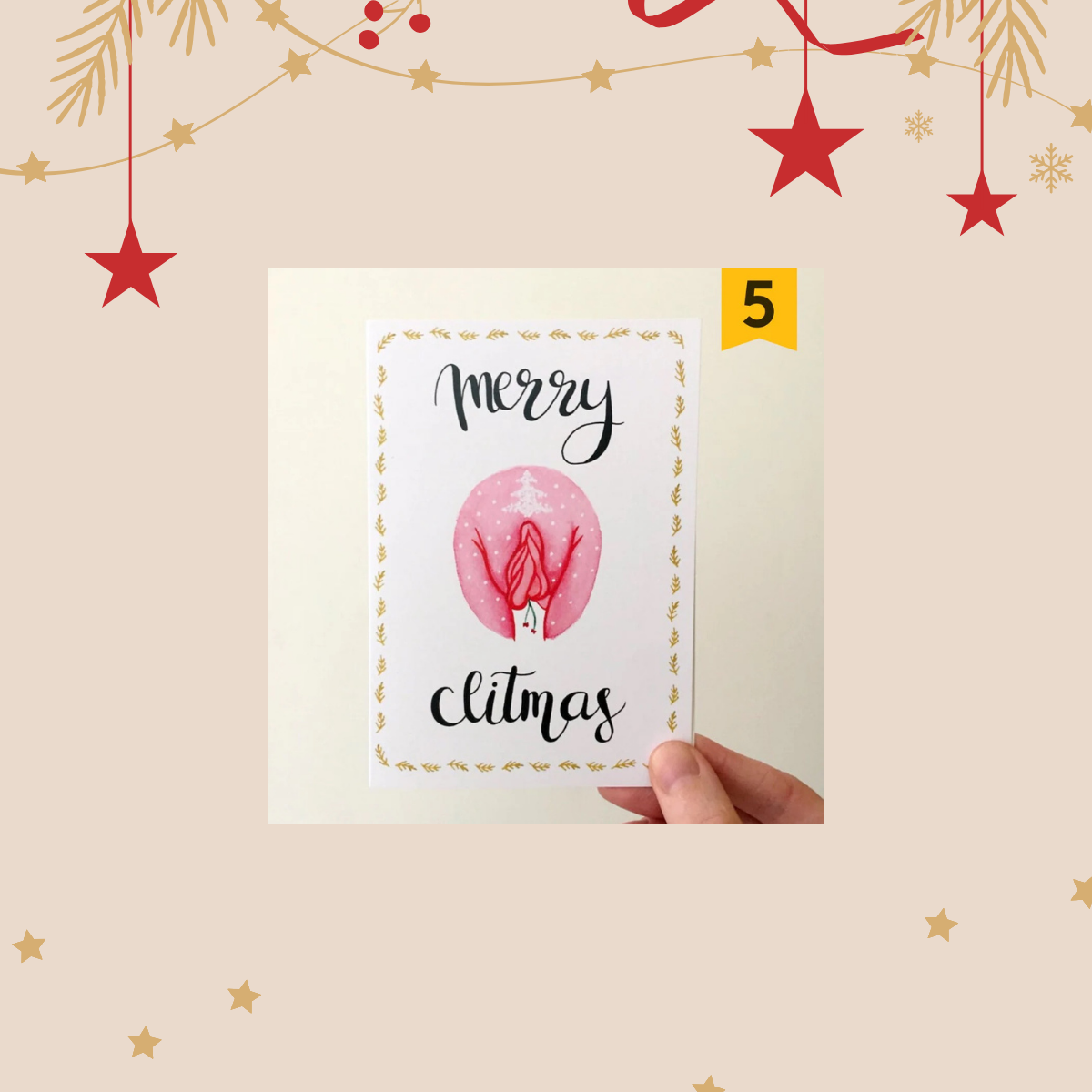 A product set themed around vulva illustrations drawn by Dutch illustrator Hilde Atalanta. Let's embrace and celebrate body diversity together with the festive Christmas atmosphere!