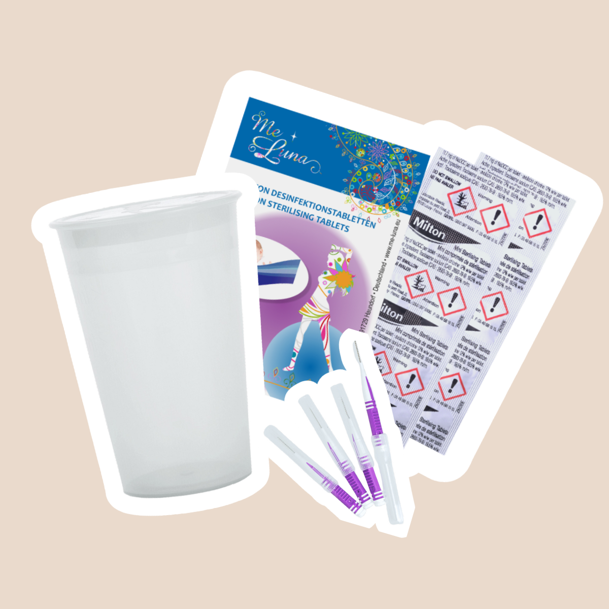 內容: Milton迷你消毒丸 (10粒裝) x2、Me Luna PP 消毒杯 x 1、Me Luna 月經杯氣孔清潔刷 (4支裝)x 1